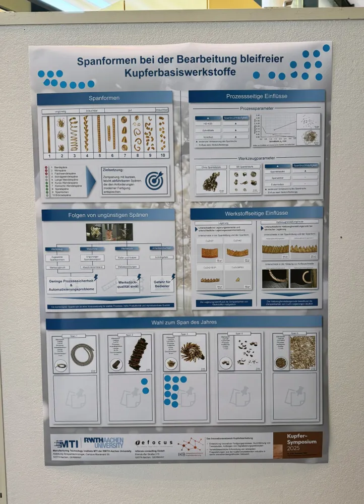 Herzlichen Glückwunsch an Kilian Brans, unserem Leiter des Innovationsnetzwerks Kupferbearbeitung IKB und wissenschaftlichen Mitarbeiter am Manufacturing Technology Institute – MTI der RWTH Aachen, zum 1. Preis für das beste wissenschaftliche Poster auf dem 19. Kupfer-Symposium vom 12.-13. November 2025 des Kupferverband e.V.!